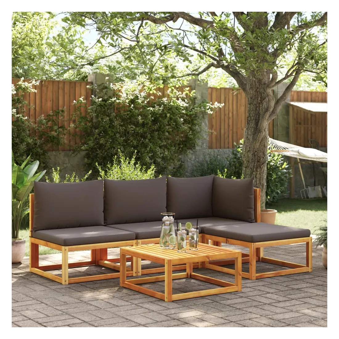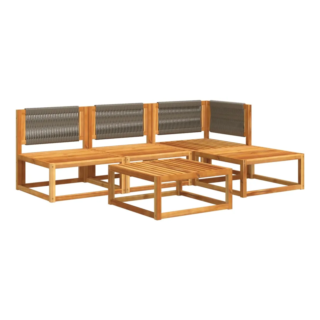 Ensemble de canapés de jardin 5 pièces avec coussins en bois d'acacia et corde
