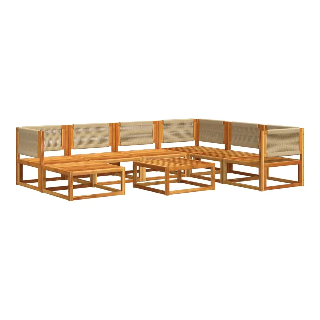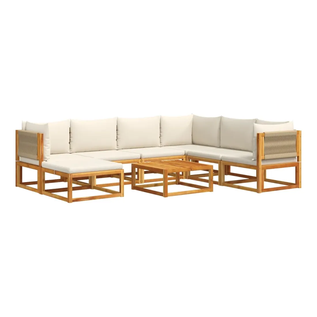 Ensemble de canapés de jardin 8 pièces avec coussins en bois d'acacia et corde