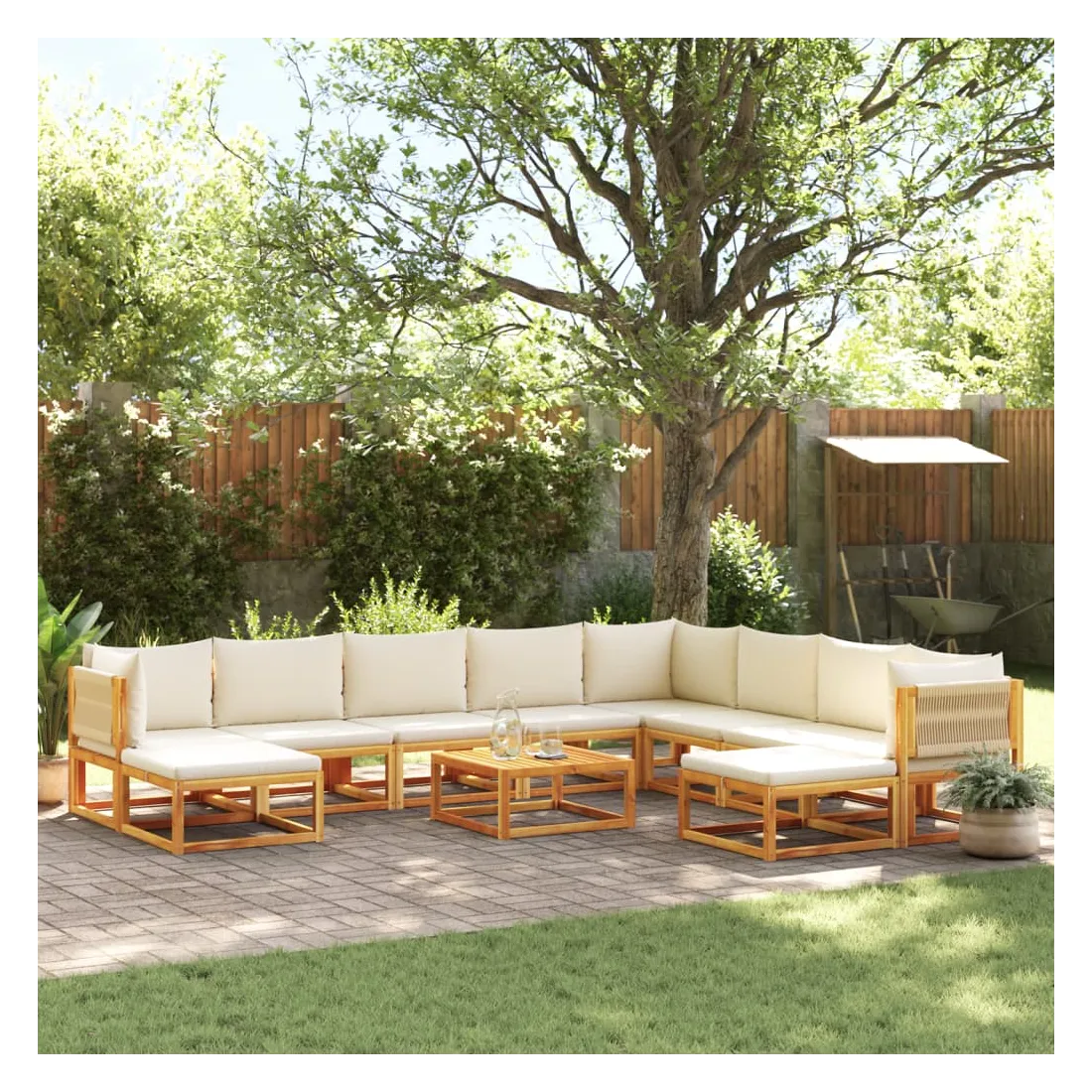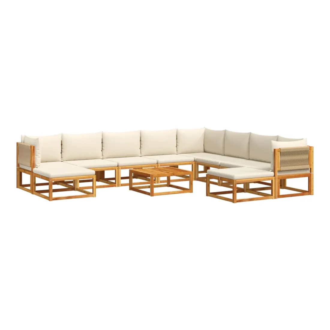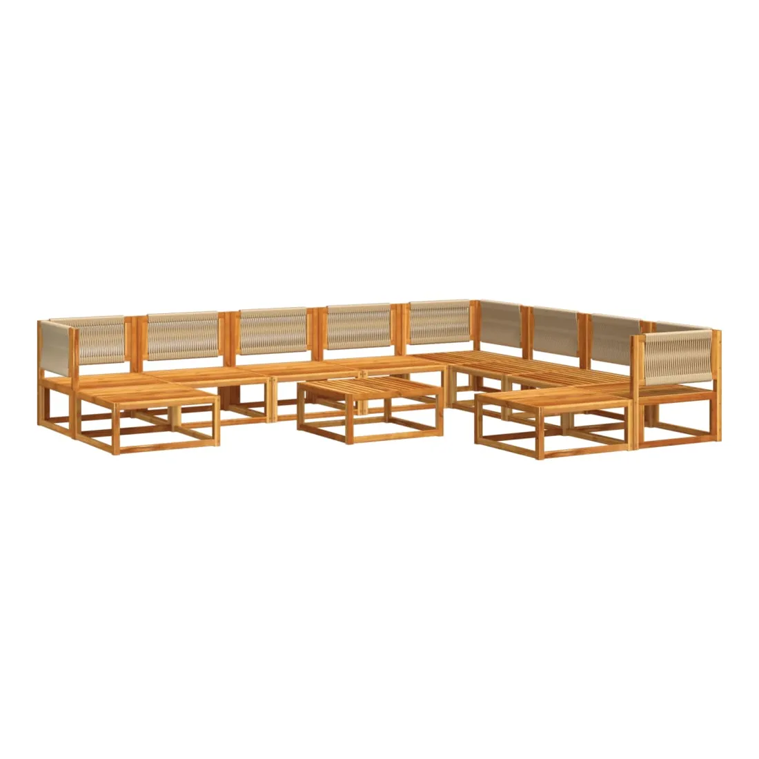 Ensemble de canapés de jardin 11 pièces avec coussins en bois d'acacia et corde