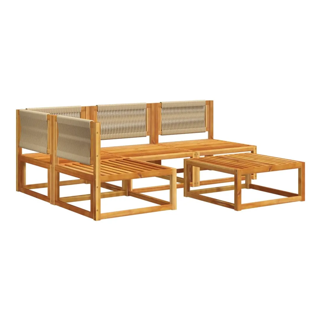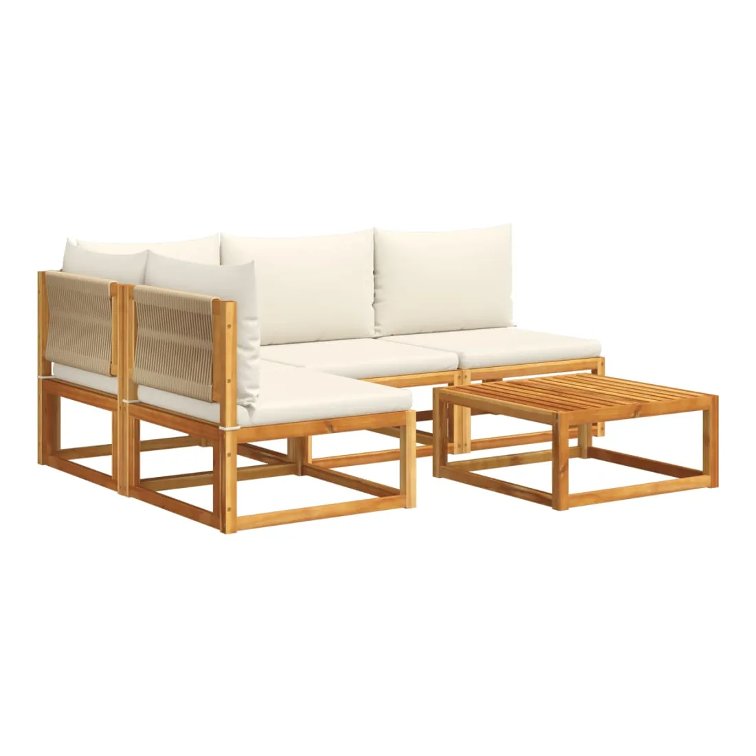 Ensemble de canapés de jardin 5 pièces avec coussins en bois d'acacia et corde