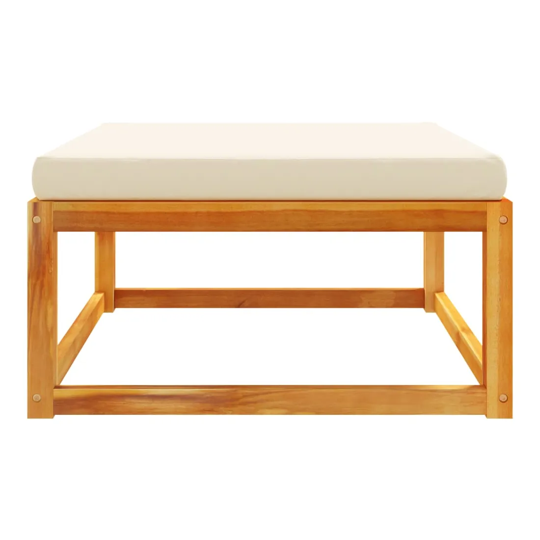 Ce repose-pied de jardin en bois avec coussin sera un excellent complément à votre jardin, terrasse ou patio pour discuter avec la famille et les amis ou simplement profiter du temps. Cadre robuste et stable : le bois d'acacia massif est connu pour sa solidité et sa durabilité. Ses couleurs variées et ses grains uniques lui confèrent un aspect attrayant. Sa stabilité et sa résistance aux intempéries en font un matériau idéal pour la fabrication de meubles d'intérieur et d'extérieur.Housse amovible et lavable : le coussin de siège est doté d'une housse amovible pour un lavage et un entretien faciles.Conception modulaire : ce meuble d'extérieur a une conception modulaire, ce qui le rend complètement flexible et facile à déplacer, afin que vous puissiez créer un agencement de meubles d'extérieur personnalisé.Nombreuses applications : ce pouf d'extérieur peut non seulement être utilisé pour s'asseoir ou se détendre, mais il peut également être utilisé comme table basse pour contenir vos boissons, votre nourriture et d'autres décorations. Bon à savoir :Pour que vos meubles d'extérieur restent beaux, nous vous recommandons de les protéger avec une housse imperméable.