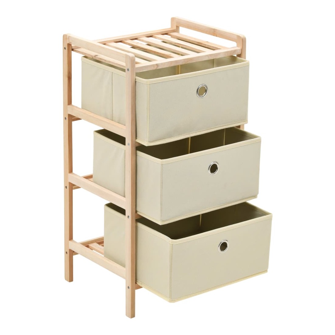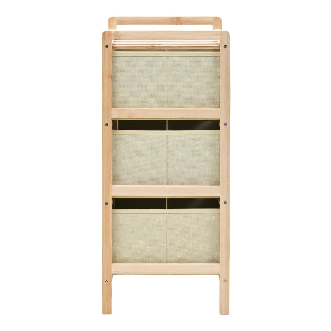 Cette étagère de rangement en bois de cèdre massif avec 3 paniers tissu séparés offrira suffisamment d’espace pour ranger vos objets de tous les jours. L'unité de stockage est légère et peut être facilement placée n'importe où dans votre maison. Les tiroirs de rangement sont fabriqués dans un tissu de couleur claire pour donner une touche élégante à votre intérieur. L'étagère de rangement est facile à assembler.