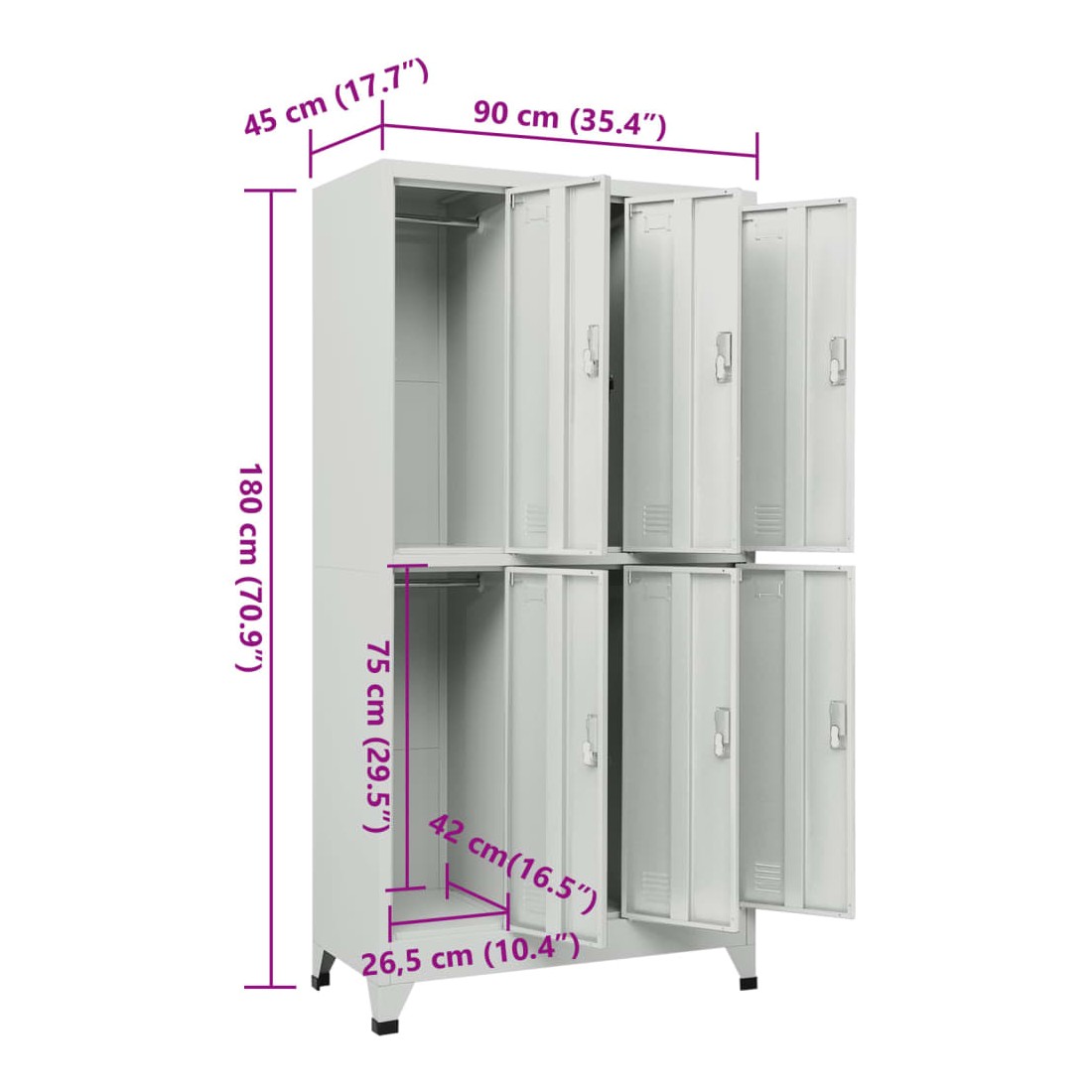 Armoire à casier avec 6 compartiments Acier 90x45x180 cm Gris