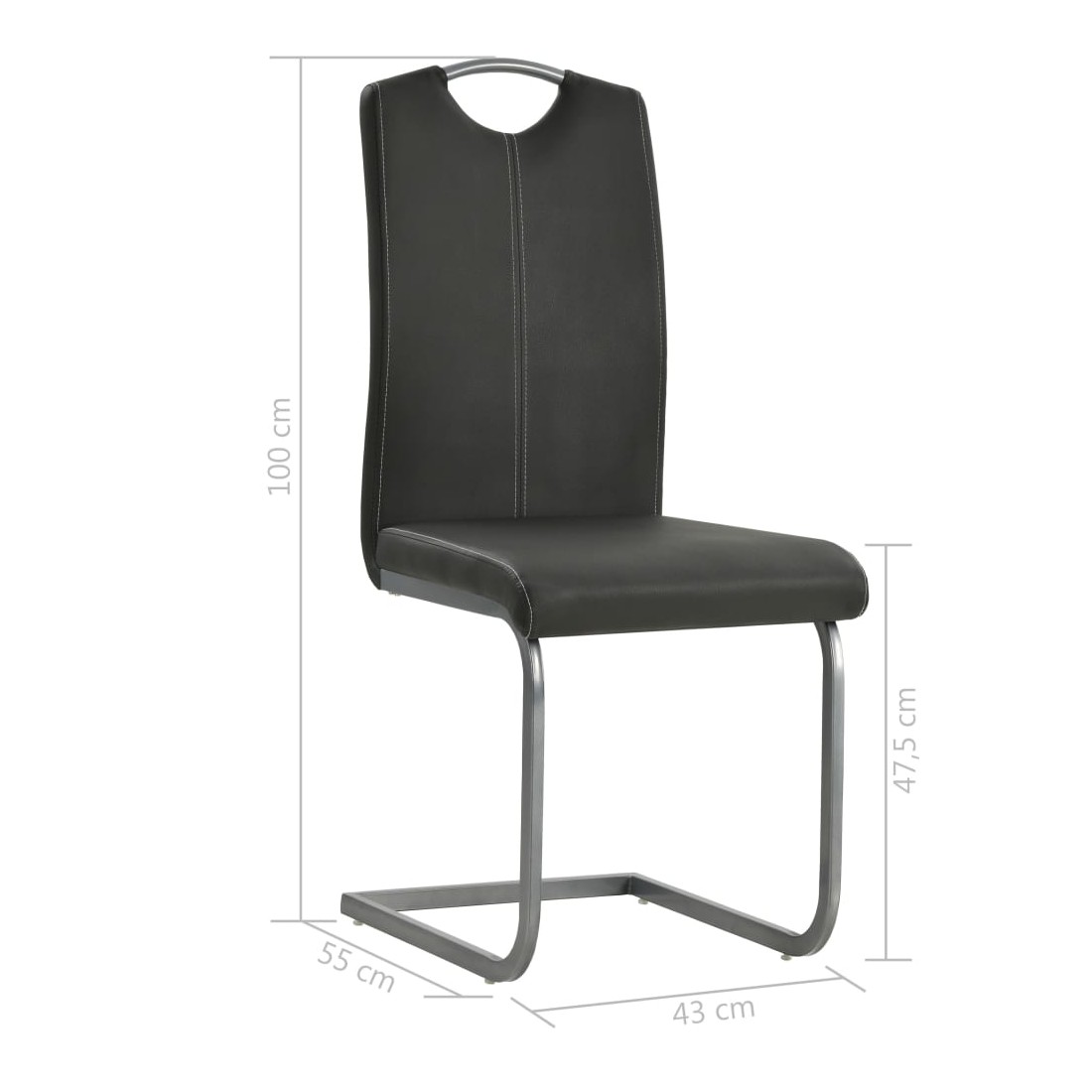 Notre ensemble de chaises cantilever à manger arbore un aspect élégant et épuré qui saura s'assortir à n'importe quelle décoration de cuisine ou de salle à manger. Recouvertes de cuir artificiel rembourré de mousse, ces chaises sont confortables et apporteront une touche de luxe à votre intérieur. Les cadres en acier robustes rendent les chaises stables et durables. L'ensemble de chaises est facile à assembler. La livraison comprend 4 chaises de salle à manger.