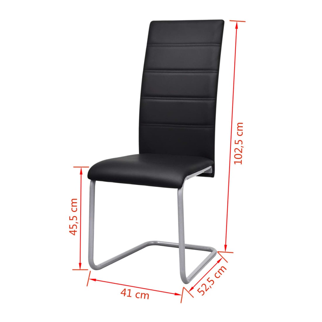 Ces chaises à manger cantilever ont un look épuré, parfait pour la vie moderne. Elles ajouteront une touche de style à votre salle à manger à la maison ou au bureau. Le siège rembourré de mousse est recouvert de cuir synthétique de qualité et résistant à l'usure. Le haut dossier offrira un maximum de confort et un grand soutien à votre dos. Cet ensemble de chaises à manger est non seulement léger mais aussi robuste, grâce à sa solide structure en acier tubulaire. L'assemblage est vraiment facile. La livraison comprend 6 chaises de salle à manger.