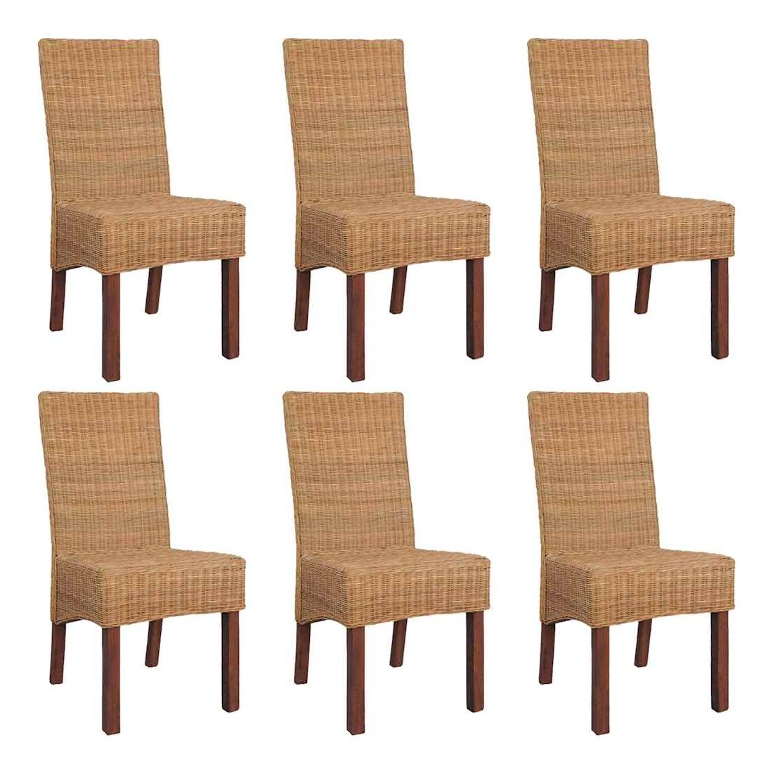 Chaises à manger lot de 6 marron rotin naturel
