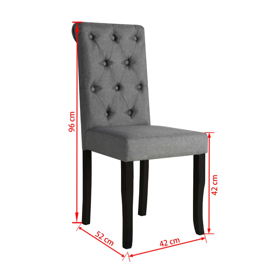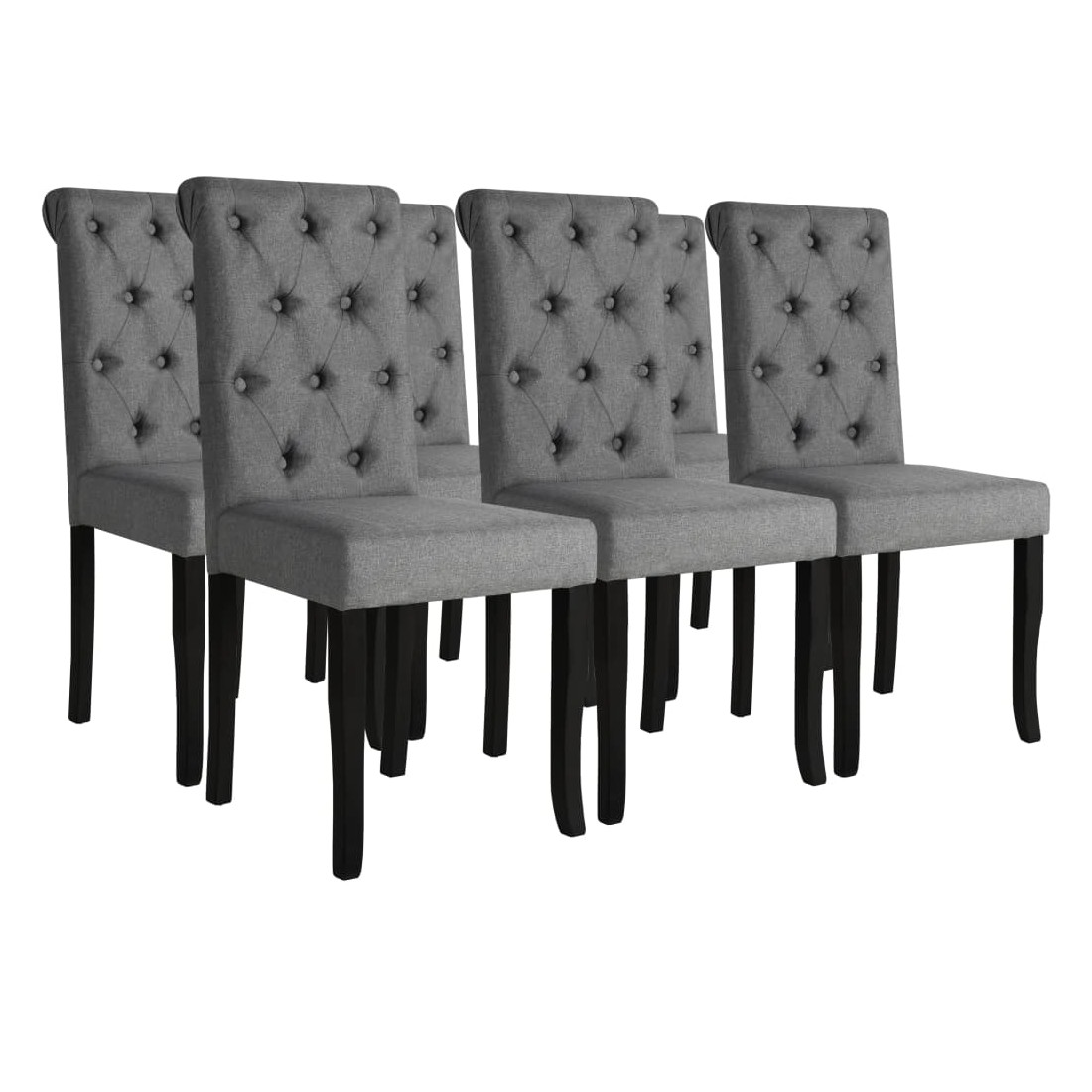 Notre ensemble de chaises à manger en bois massif, avec un design élégant et intemporel, sera un excellent accessoire pour votre cuisine ou salle à manger. Grâce au revêtement en tissu doux au toucher et au rembourrage en mousse, les chaises sont très confortables. Les boutons décoratifs sur le dossier ajoutent un joli détail classique au design. La livraison comprend 6 chaises de salle à manger. L'assemblage est facile.