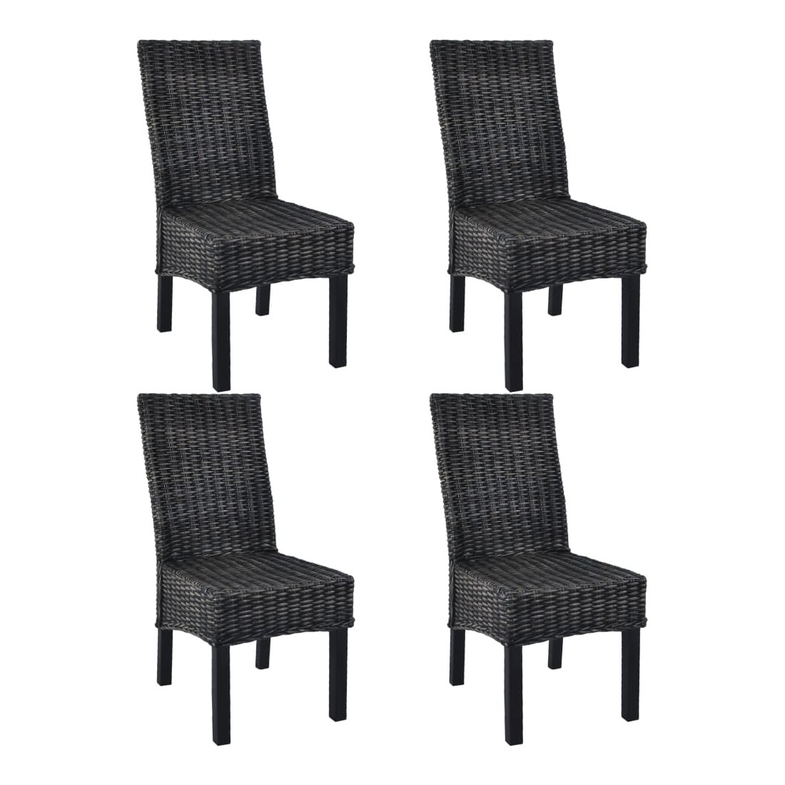 Chaises à manger lot de 4 noir rotin Kubu et bois de manguier