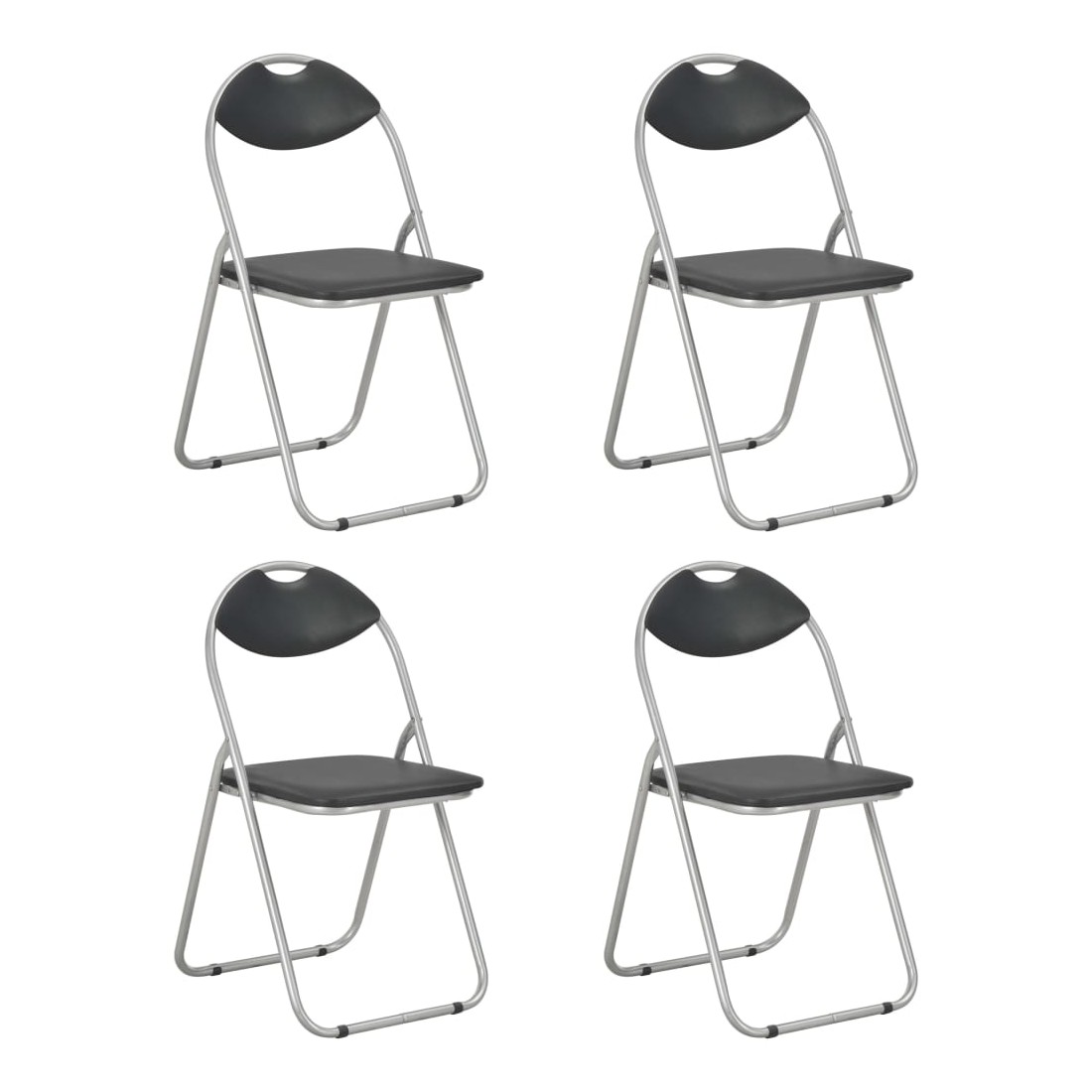 Cet ensemble de chaises pliables convient à une utilisation dans la salle à manger, la cuisine, l'entrée ou le bureau. Cet ensemble vous sera utile si vous avez besoin de plus de places assises. Elles peuvent être facilement pliées lorsqu'elles ne sont pas utilisées pour économiser de l'espace de stockage. Les cadres en acier rendent les chaises extrêmement robustes et durables. En outre, le revêtement en faux cuir résistant aux taches permet aux chaises de se nettoyer facilement avec un chiffon humide. Grâce à la construction légère, les chaises sont faciles à transporter. Nos chaises pliables sont déjà assemblées ; aucun assemblage n'est requis. La livraison comprend 4 chaises de salle à manger.