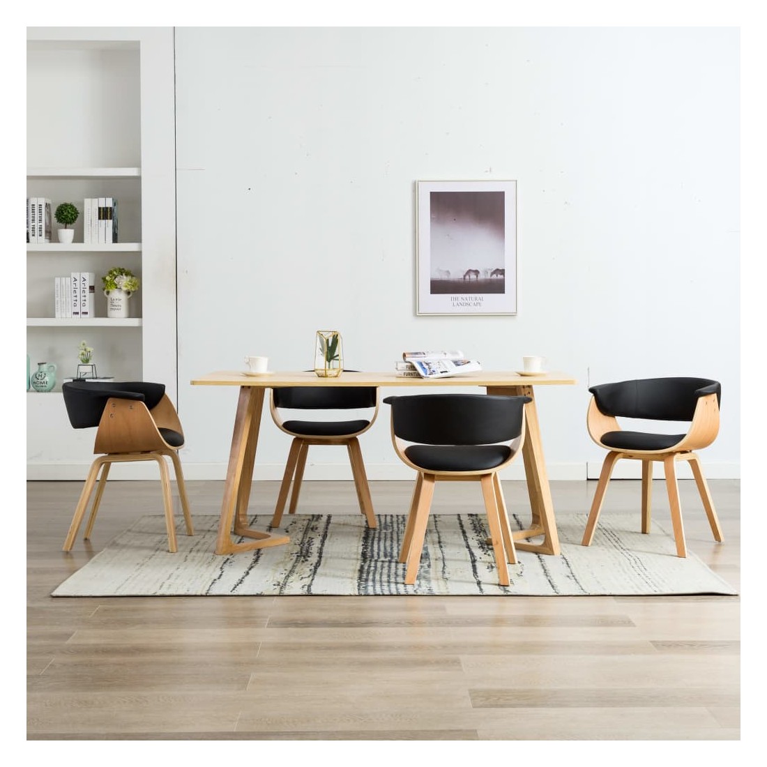 Chaises à manger lot de 4 noir bois courbé et similicuir
