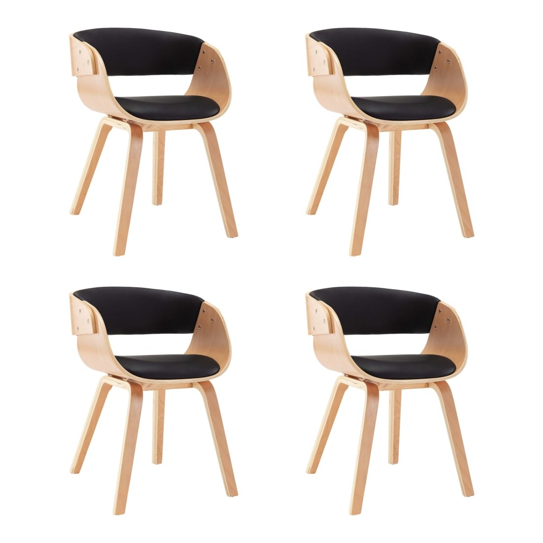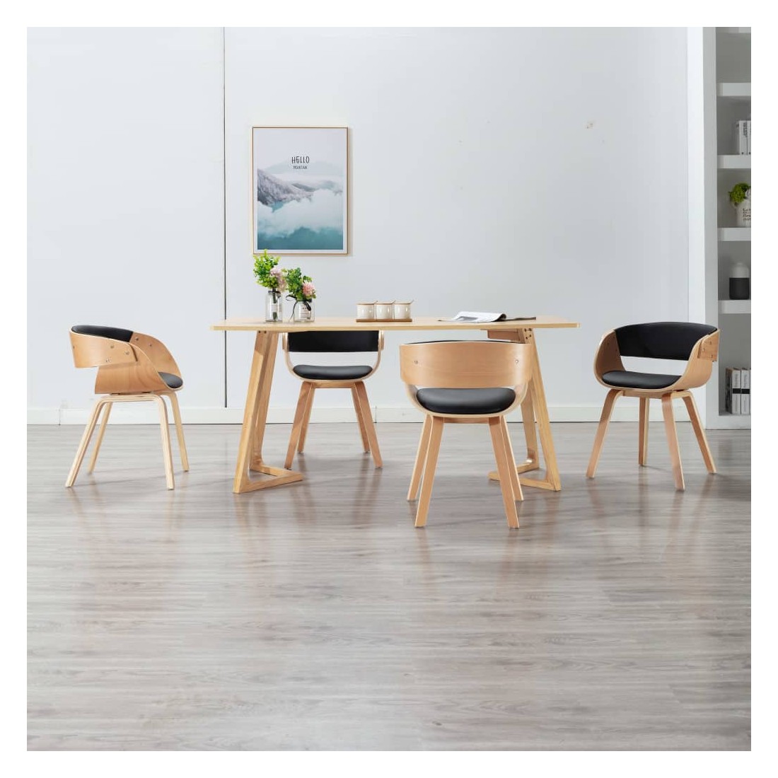 Chaises à manger lot de 4 noir bois courbé et similicuir
