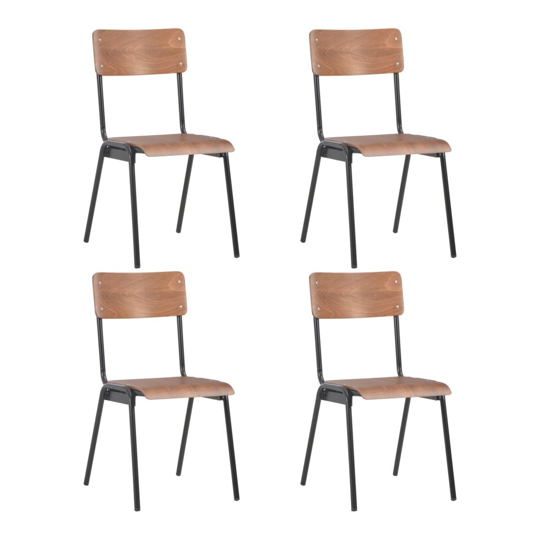 Cet ensemble de 4 chaises de salle à manger sera idéal pour une utilisation quotidienne dans votre salle à manger ou votre cuisine. Les chaises de salle à manger sont fabriquées en contreplaqué solide, ce qui les rend très robustes, durables et faciles à nettoyer avec un chiffon humide. Les pieds en acier enduit de poudre ajoutent une stabilité supplémentaire aux chaises. De plus, les chaises peuvent être empilables pour économiser de l'espace de stockage lorsqu'elles ne sont pas utilisées. La livraison comprend 4 chaises de salle à manger.