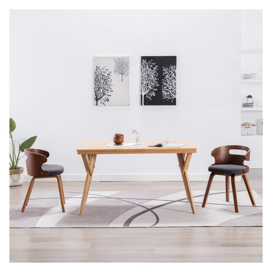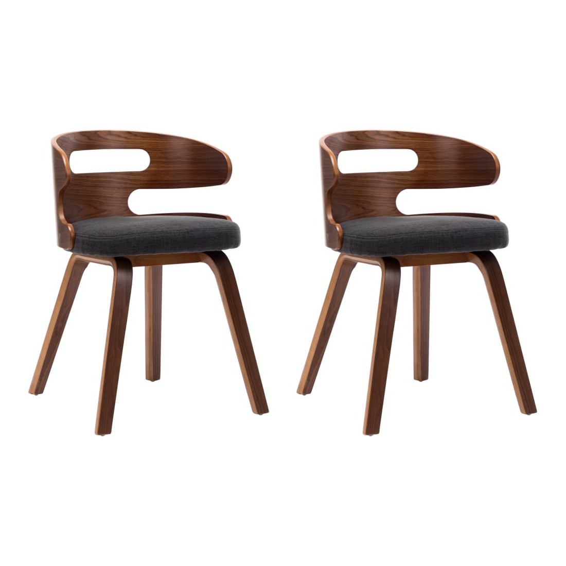 Chaises à manger lot de 2 gris foncé bois courbé et tissu