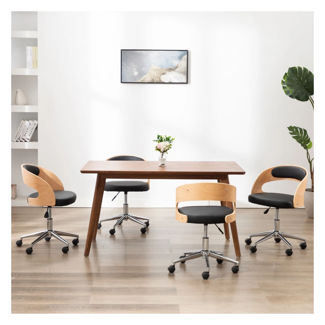 Chaises pivotantes à manger lot de 4 bois courbé et similicuir