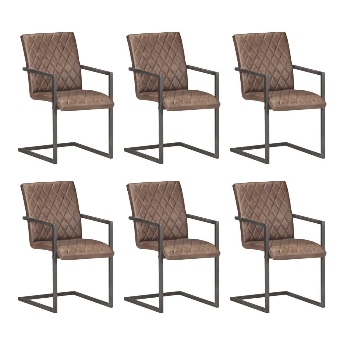 Chaises à manger cantilever lot de 6 marron cuir véritable