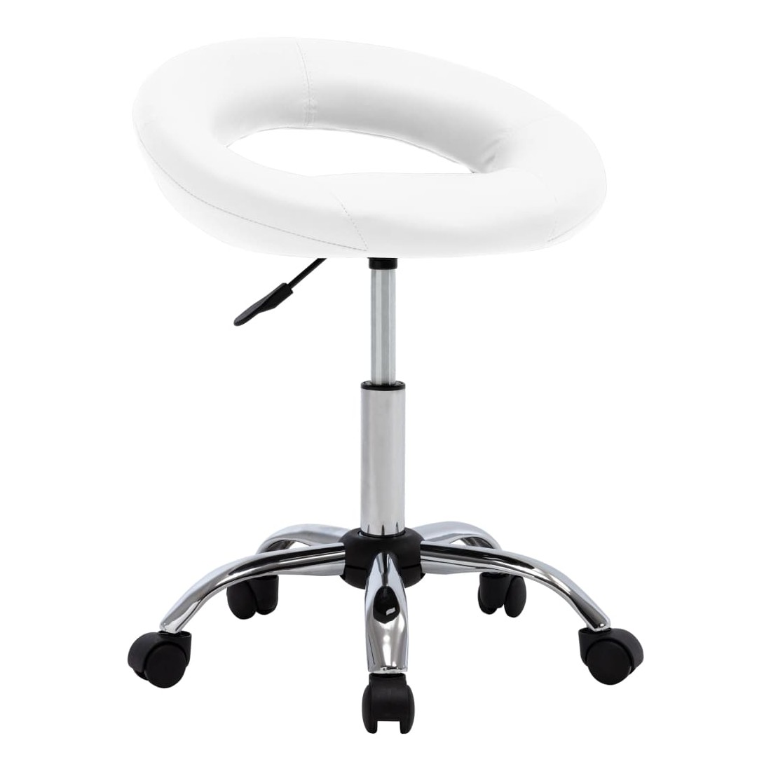 Dotée d'un design élégant et contemporain, cette chaise de salle à manger pivotante est conçue pour être un supplément pratique à votre espace de vie. Revêtue de similicuir facile à nettoyer, cette chaise vous apportera à coup sûr un confort d'assise optimal. Vous pourrez profiter de votre dîner, lire et vous reposer dans le salon. Grâce au mécanisme de levage à gaz, le siège est réglable en hauteur. Le siège pivote à 360 degrés avec une grande flexibilité et est pratique pour la déplacer par des roulettes. De plus, cette chaise pivotante est soutenue par des pieds en acier chromé, assurant une stabilité supplémentaire.