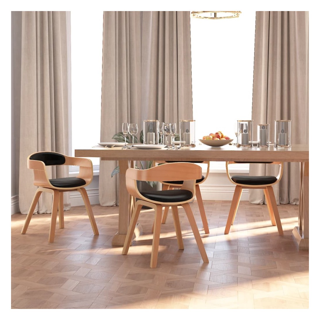 Cet ensemble de chaises de salle à manger élégant au design esthétique et ergonomique constitue un supplément décoratif et confortable à votre salle à manger et à votre cuisine. La chaise de salle à manger est rembourrée en similicuir, doux pour vous asseoir et facile à nettoyer. Grâce au siège et au dossier rembourrés en mousse, cette chaise de cuisine offre un confort d'assise optimal. Les pieds en bois courbé de haute qualité rendent la chaise très solide et durable et ajoutent à son aspect chic.