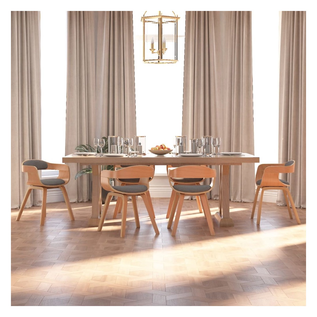 Chaise à manger lot de 6 gris clair bois courbé et tissu
