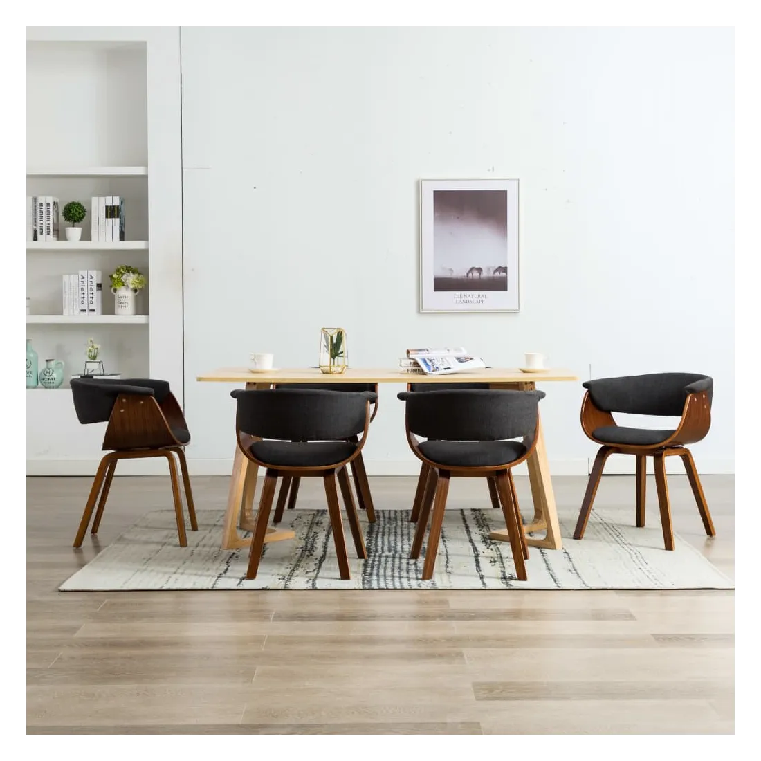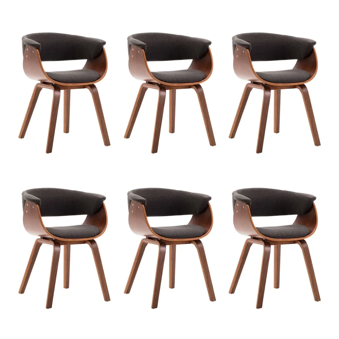 Chaises à manger lot de 6 gris bois courbé et tissu