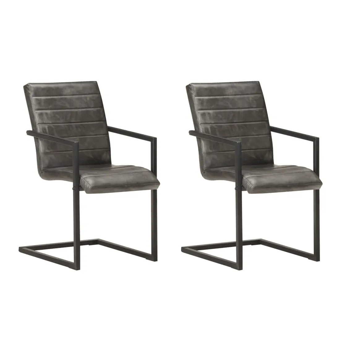 Ces chaises de salle à manger cantilever avec leur design rétro et à l'effet de détresse conviendront à toute cuisine ou salle à manger. Grâce à l'assise et au dossier bien rembourrés, ces chaises en cuir véritable sont très confortables et faciles à nettoyer. Les cadres en fer enduit de poudre robuste les rendent résistantes et durables.
