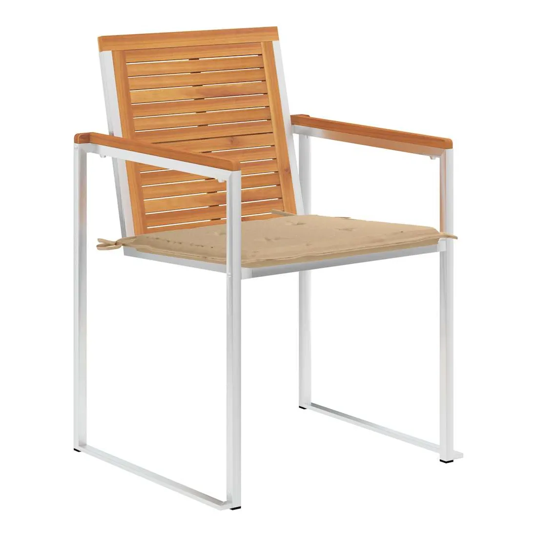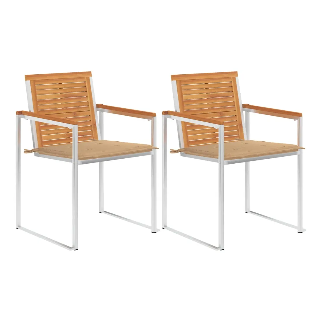 Ces chaises de jardin en bois sont un excellent choix pour les repas en plein air ou simplement pour vous détendre dans votre jardin ou sur votre terrasse. Ces chaises sont fabriquées en bois d'acacia massif à finition à l'huile et en acier inoxydable 304 de haute qualité, ce qui les rend résistantes à la rouille. Elles sont également robustes et faciles à nettoyer. De plus, le coussin ajoute du confort supplémentaire lors de votre temps de détente. Chaque coussin a deux jeux de cordes pour le fixer fermement sur la chaise d'extérieur.