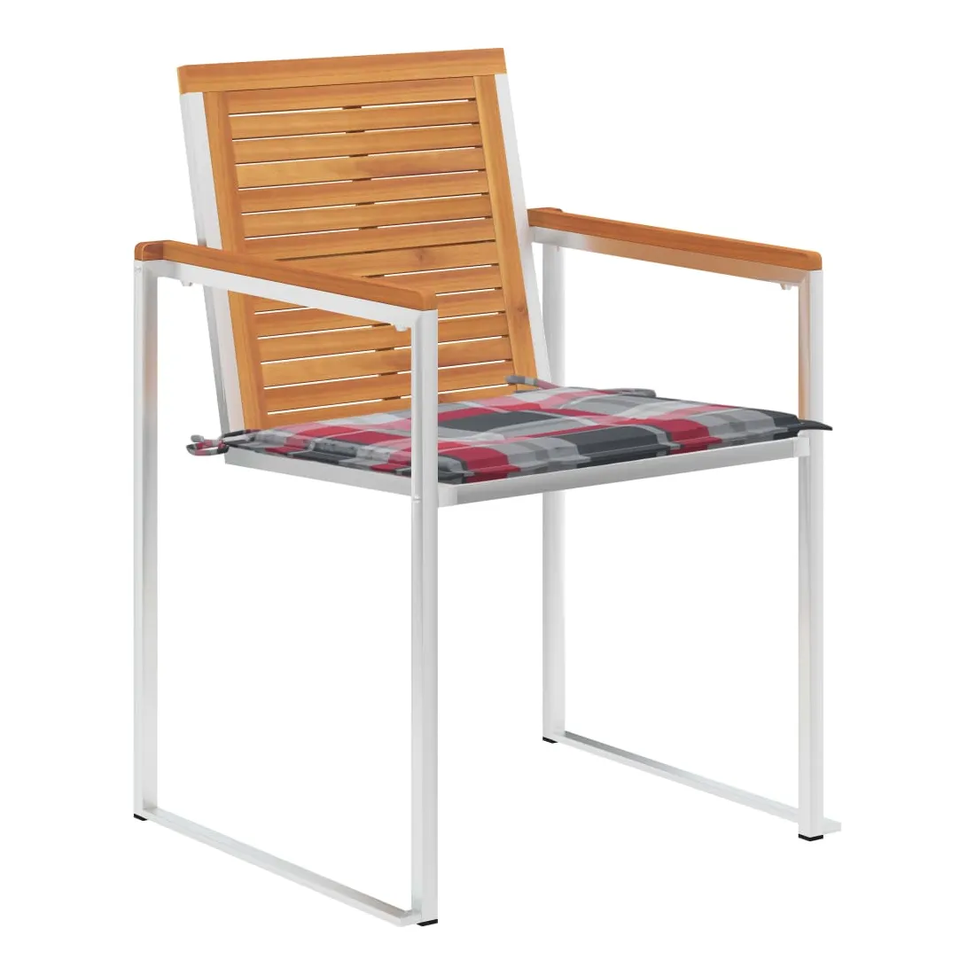 Ces chaises de jardin en bois sont un excellent choix pour les repas en plein air ou simplement pour vous détendre dans votre jardin ou sur votre terrasse. Ces chaises sont fabriquées en bois d'acacia massif à finition à l'huile et en acier inoxydable 304 de haute qualité, ce qui les rend résistantes à la rouille. Elles sont également robustes et faciles à nettoyer. De plus, le coussin ajoute du confort supplémentaire lors de votre temps de détente. Chaque coussin a deux jeux de cordes pour le fixer fermement sur la chaise d'extérieur.