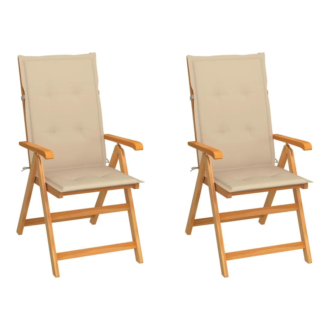 Chaises de jardin lot de 2 et coussins beige Bois teck massif