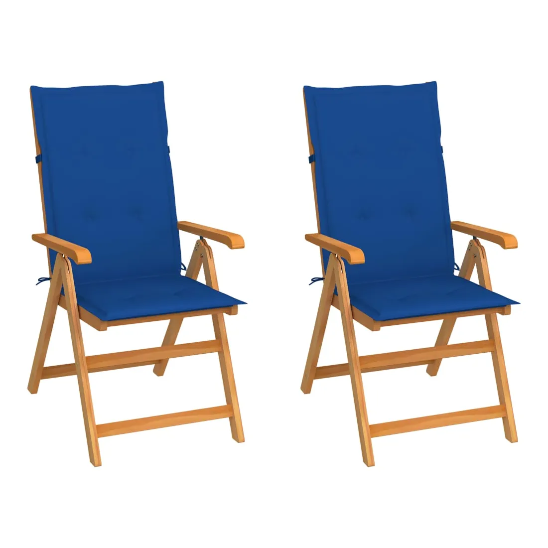 Chaises de jardin lot de 2 et coussins bleu royal Teck massif