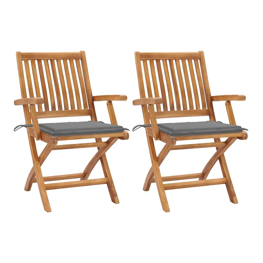 Chaises de jardin lot de 2 et coussins gris Bois de teck massif