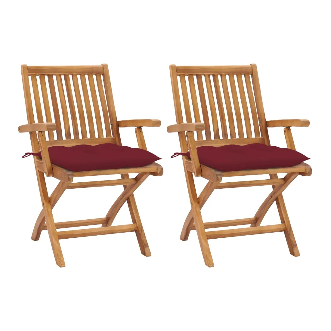 Cet élégant ensemble de 2 chaises de jardin en bois présente un design intemporel. Les chaises d’extérieur conviennent à tous les environnements, tels que les maisons, les bureaux, les bars et les cafés, grâce à leur design simple mais élégant. Fabriquée en bois dur de teck extrêmement durable, cette pièce de meuble en teck a été chevronnée, séchée au four puis finement poncée pour lui donner un aspect très lisse. Le bois de teck est connu pour sa résistance exceptionnelle aux intempéries, ce qui le rend bien plus adapté aux meubles de jardin que tout autre type de bois. Le bois de teck est le choix idéal si vous souhaitez acheter un meuble de jardin durable. Ces chaises de patio peuvent être pliées pour économiser de l’espace de rangement lorsqu'elles ne sont pas utilisées. Les coussins d’assise bien rembourrés, le siège incurvé et le dossier offrent également un confort supplémentaire.