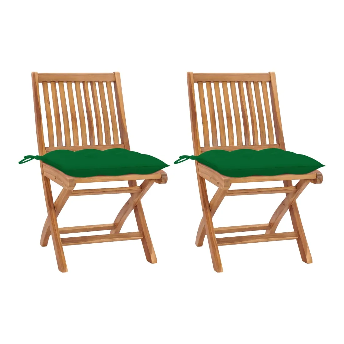 Chaises de jardin lot de 2 et coussins vert Bois de teck massif