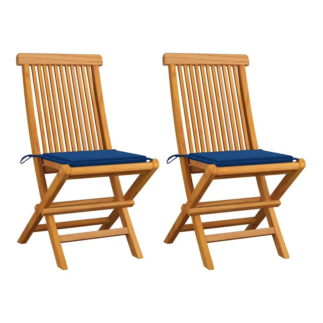 Chaises de jardin et coussins bleu royal lot de 2 Bois de teck