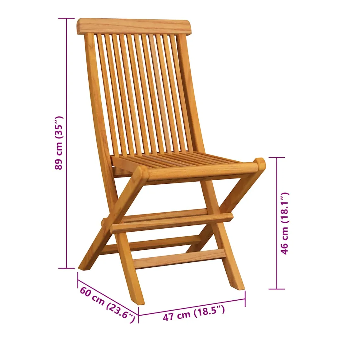 vidaXLCes chaises de jardin pliables en bois, au design simple pourtant élégant, sont conçues pour vous offrir une expérience d'assise confortable. Fabriquée en bois dur de teck extrêmement durable, cette pièce de meuble en teck a été chevronnée, séchée au four puis finement poncée pour lui donner un aspect très lisse. Le bois de teck est connu pour sa résistance exceptionnelle aux intempéries, ce qui le rend bien plus adapté aux meubles de jardin que tout autre type de bois. Le bois de teck est le choix idéal si vous souhaitez acheter un meuble de jardin durable. La surface poncée est facile à nettoyer avec un chiffon humide. Ces chaises de jardin sont également légères, ce qui les rend complètement flexibles et faciles à déplacer. Les chaises d’extérieur peuvent être facilement repliées lorsqu'elles ne sont pas utilisées. De plus, les coussins de siège inclus offrent également un confort d'assise supplémentaire.