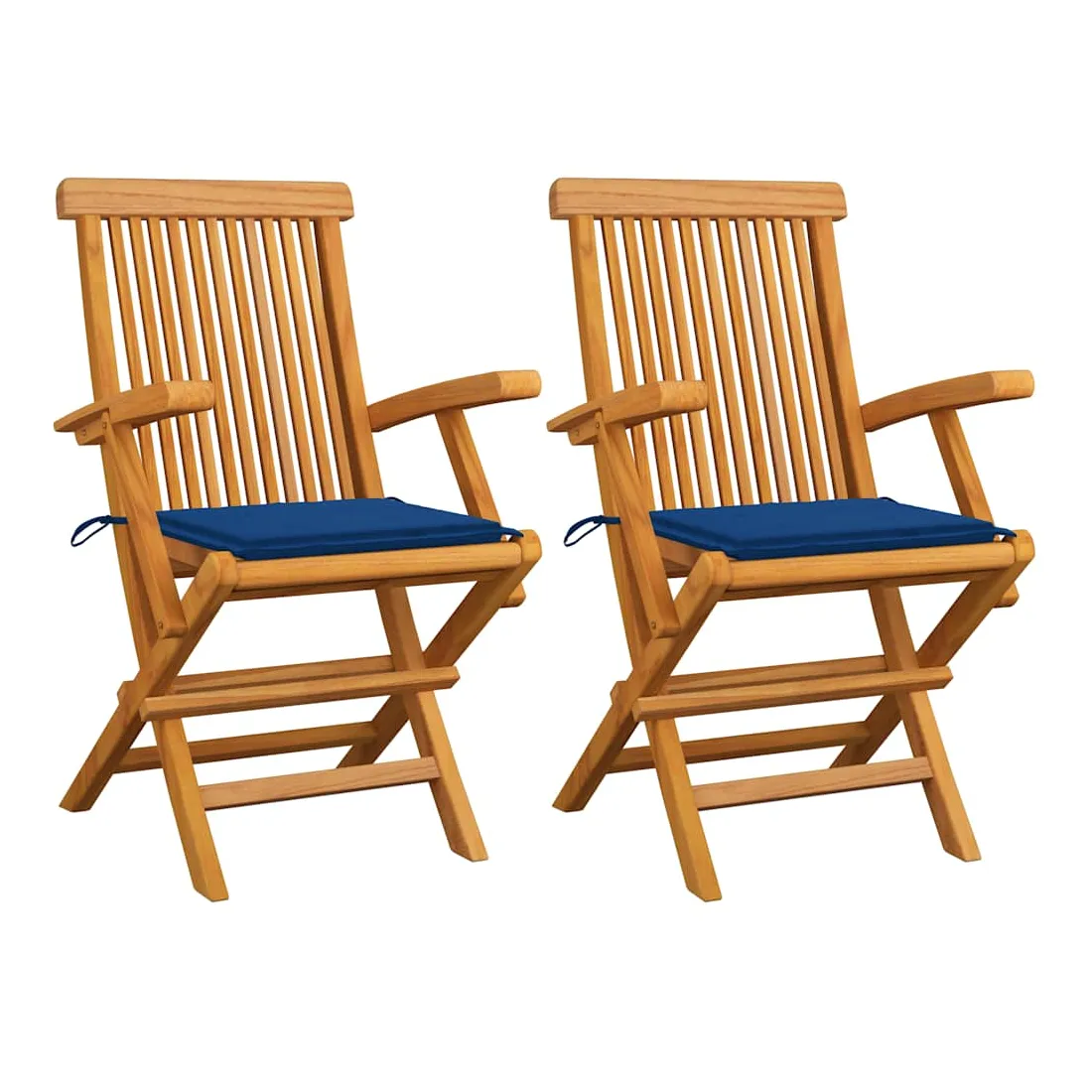 Chaises de jardin et coussins bleu royal lot de 2 Bois de teck