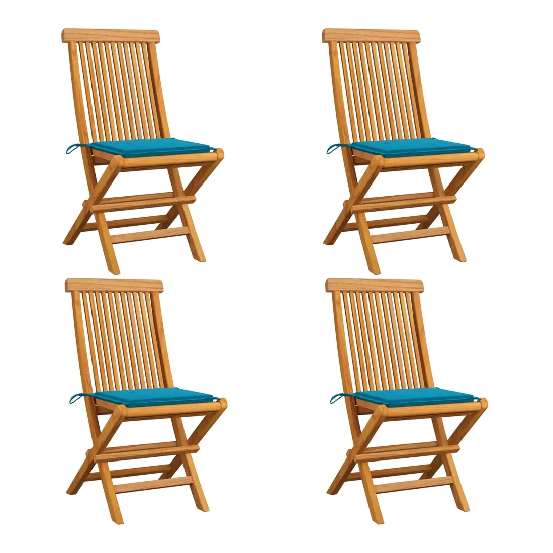 Chaises de jardin et coussins bleu lot de 4 Bois de teck massif