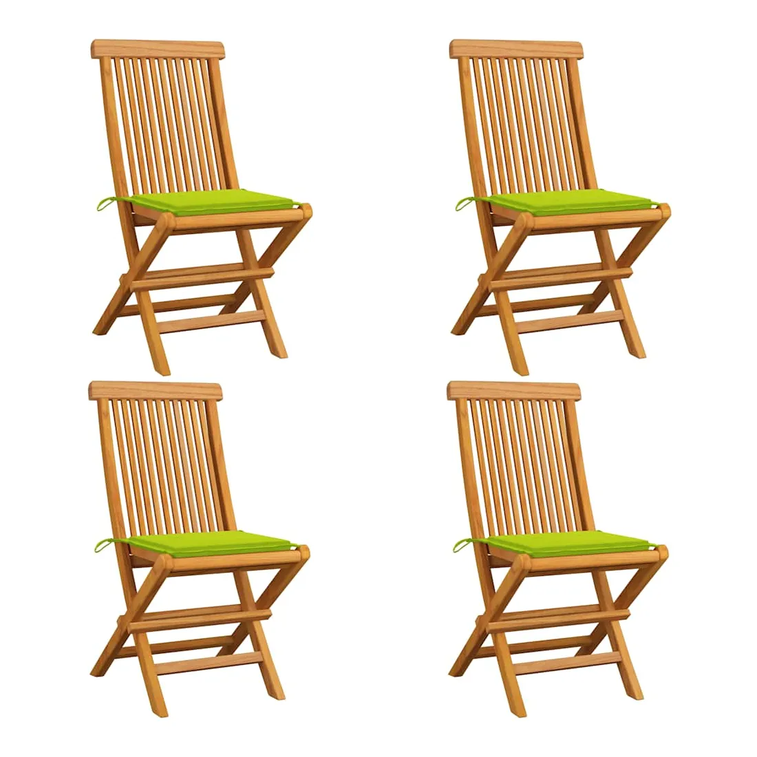 Chaises de jardin avec coussins vert vif lot de 4 Bois de teck