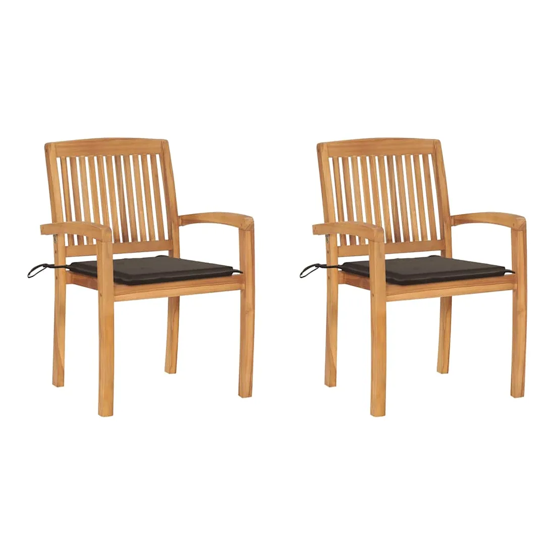 Chaises de jardin lot de 2 et coussins taupe Bois teck massif