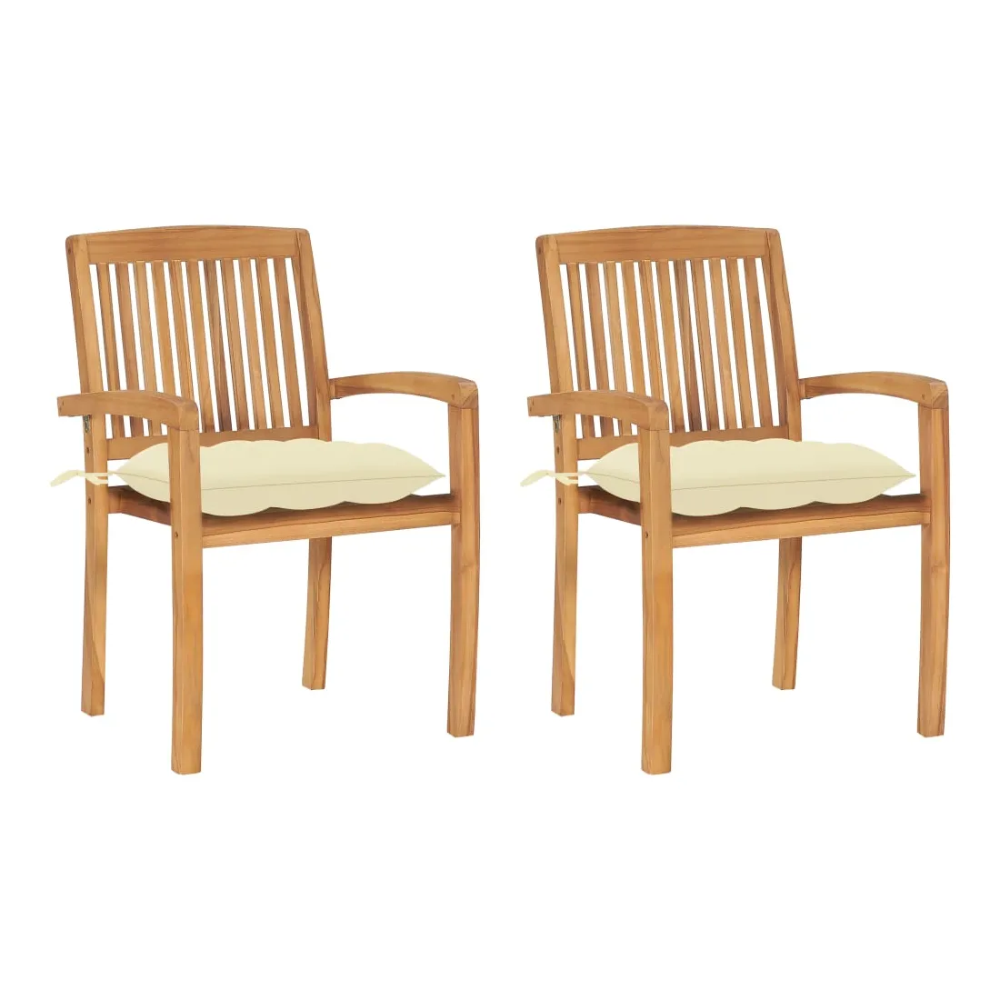 Chaises de jardin lot de 2 et coussins blanc crème Bois de teck