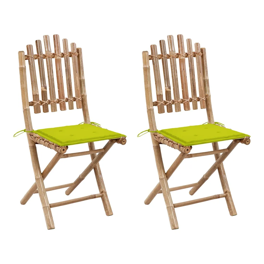 Chaises pliables de jardin lot de 2 avec coussins Bambou