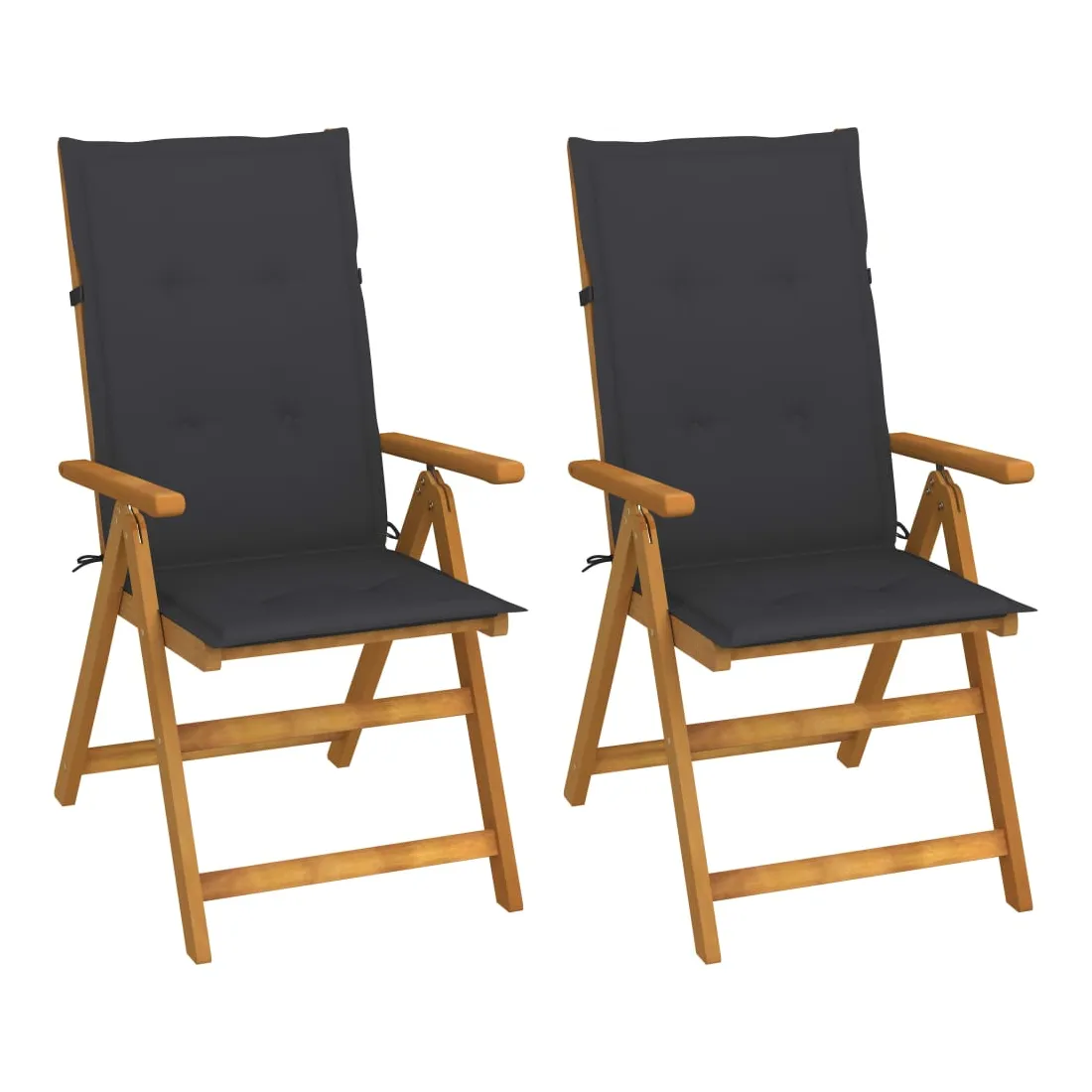 Cet ensemble de chaises de jardin inclinables en bois avec coussins est conçu pour améliorer votre niveau de confort tout en vous relaxant à l'extérieur. Il est idéal pour discuter en famille et entre amis ou tout simplement profiter des bains de soleil apaisants ! Ces chaises d'extérieur sont en bois d'acacia massif avec une finition à l'huile, un bois dur aux grains denses. Le bois d'acacia massif a la force de soutenir le poids et de résister à l'usure du temps. Avec la surface finie à l'huile, ces chaises sont faciles à nettoyer avec un chiffon humide. De plus, les dossiers de ces fauteuils sont réglables en 5 positions d'inclinaison, vous permettant de toujours trouver la position la plus agréable. De plus, les coussins fournis offrent un confort supplémentaire lors de la détente ou du dîner. Chaque coussin a une bande élastique et deux jeux de cordes pour le fixer fermement sur la chaise.