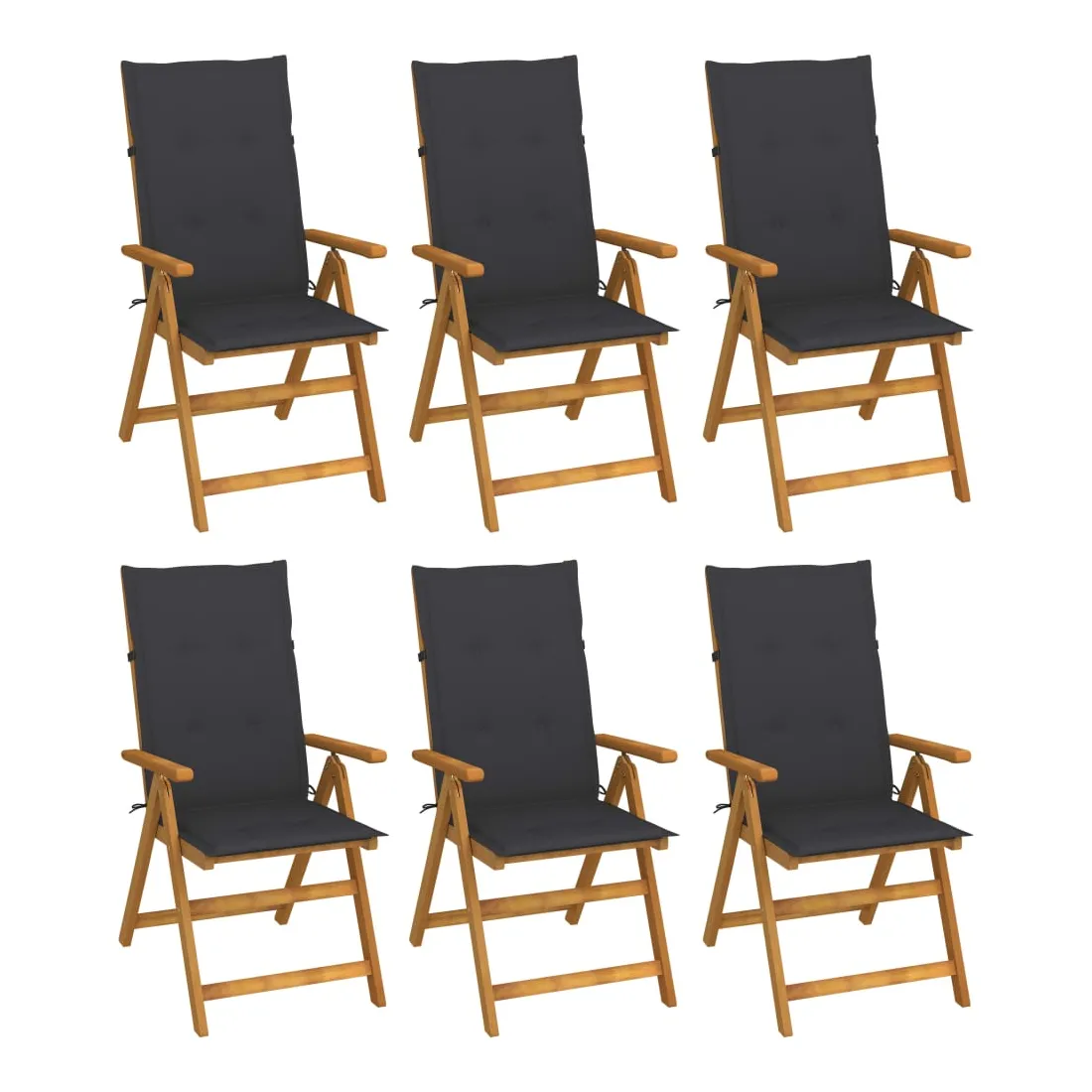 Chaises pliables de jardin lot de 6 avec coussins Bois d'acacia