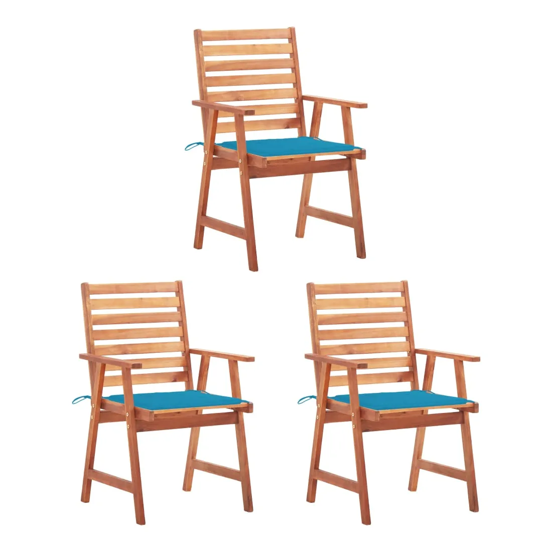 Chaises à manger d'extérieur lot de 3 et coussins Acacia massif