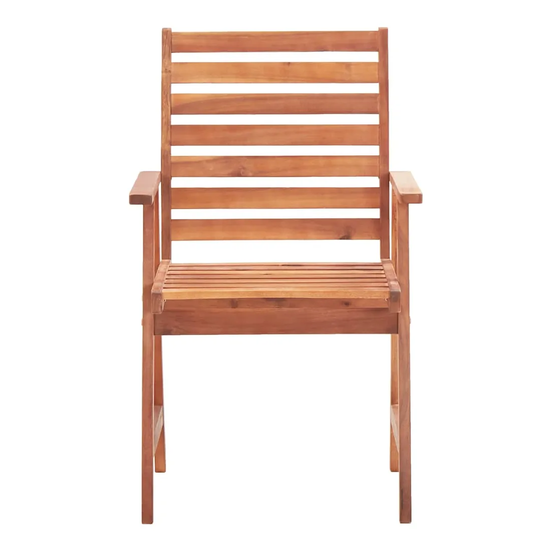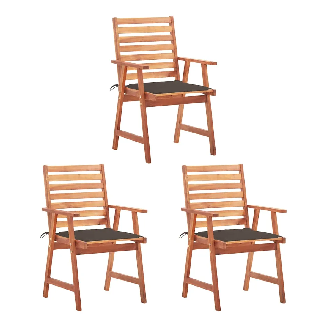 Cet ensemble de chaises de salle à manger contemporain en bois avec coussins ajoutera une touche de style naturel à votre jardin, terrasse ou patio. Cet ensemble de chaises en bois sera un excellent choix pour les repas en plein air. Ces chaises de jardin sont fabriquées en bois d'acacia massif, un bois dur tropical, résistant aux intempéries et durable pendant des années. La surface finie à l'huile est facile à nettoyer avec un chiffon humide. La conception à lattes apportera un charme rustique. De plus, les coussins inclus offrent du confort supplémentaire lors de l'assise. Il est composé à 100 % de polyester qui a été traité pour le rendre imperméable. Chaque coussin a deux jeux de cordes pour le fixer fermement sur la chaise.
