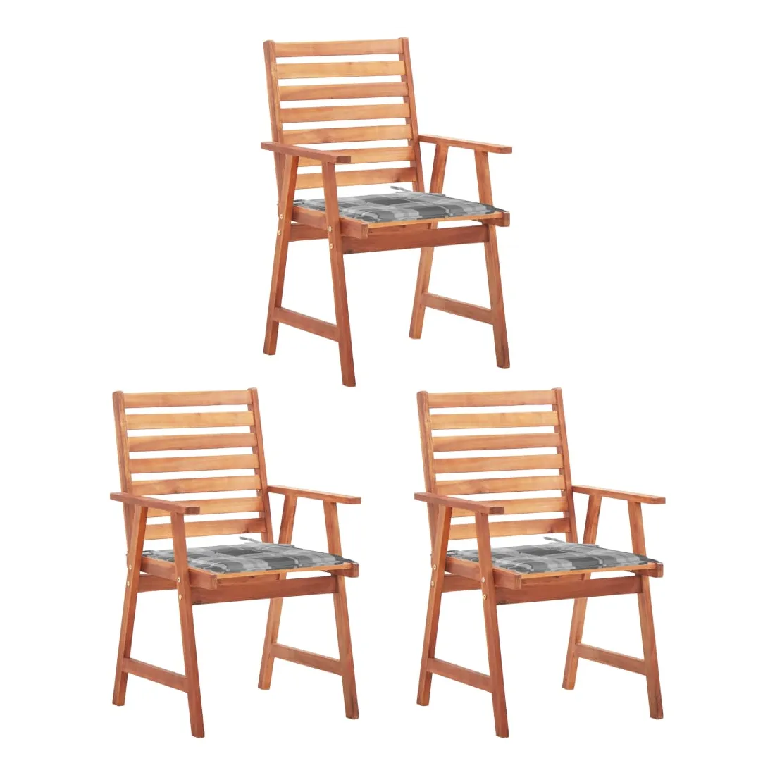 Chaises à manger d'extérieur lot de 3 et coussins Acacia massif