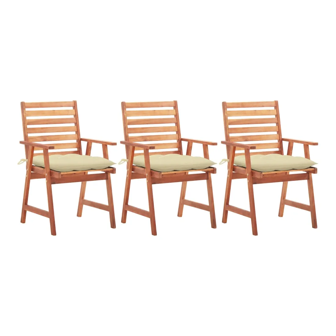 Chaises à manger d'extérieur lot de 3 et coussins Acacia massif