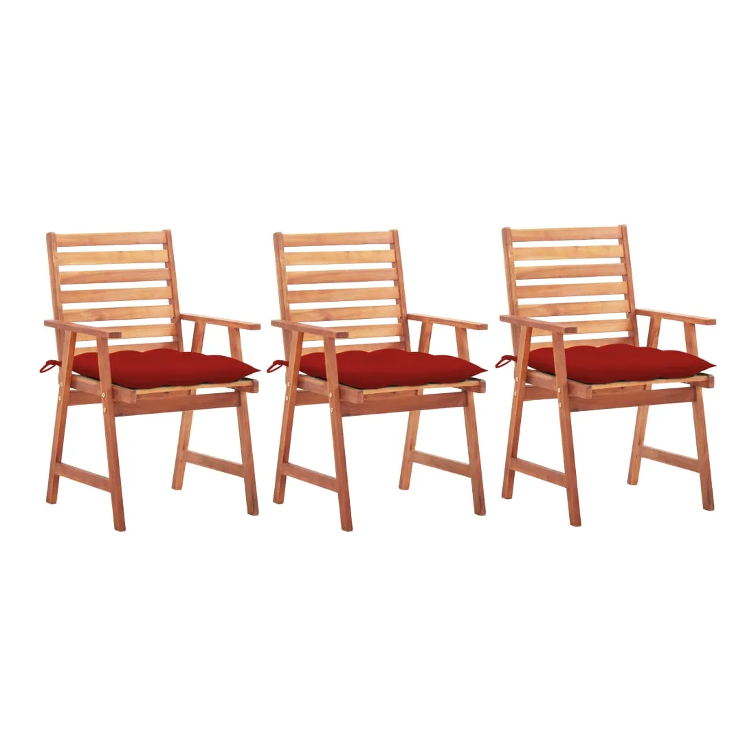 Chaises à manger d'extérieur lot de 3 et coussins Acacia massif