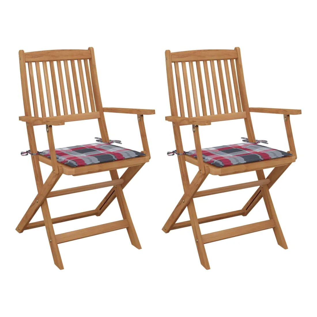 Chaises pliables de jardin lot de 2 avec coussins Bois d'acacia