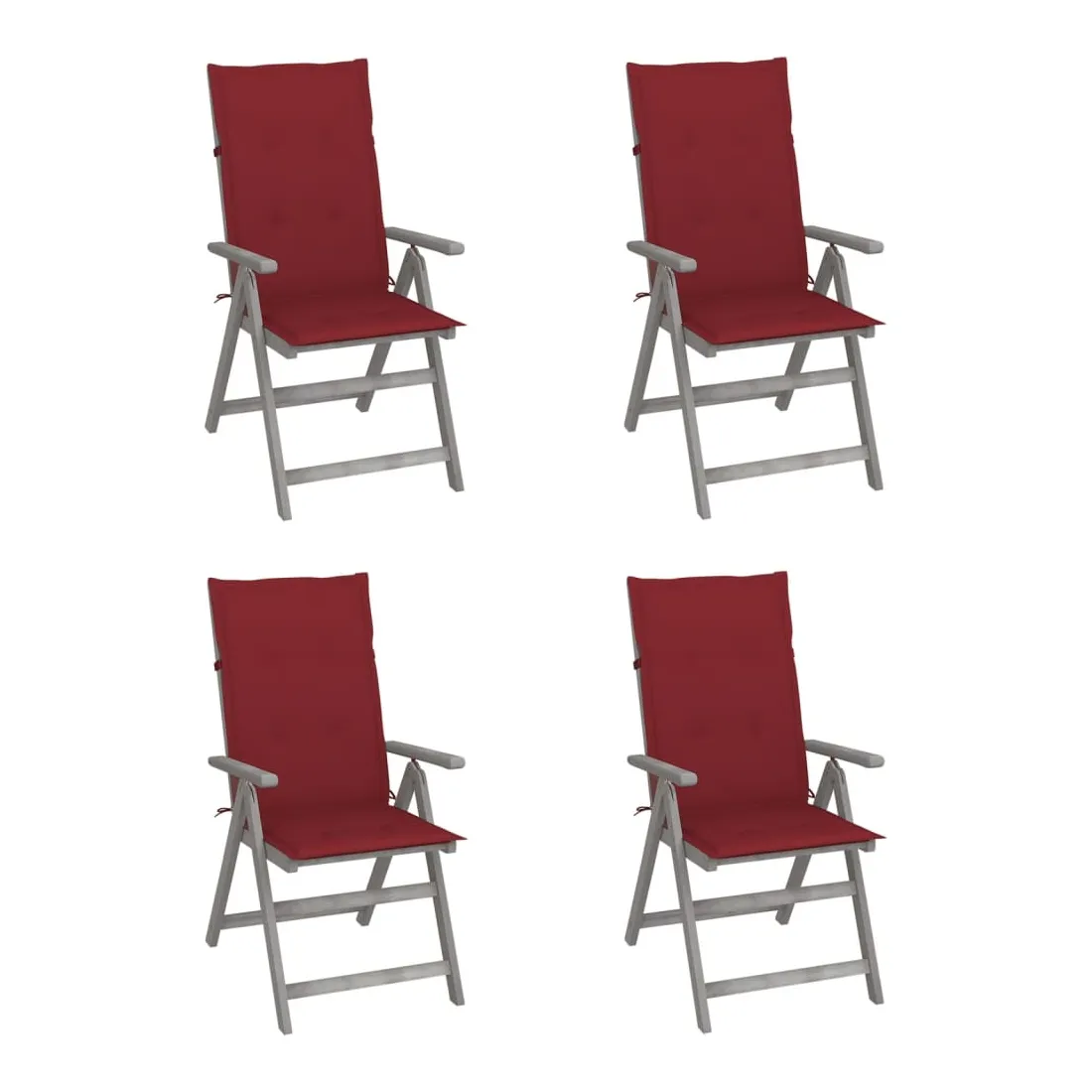 Chaises inclinables de jardin lot de 4 et coussins Bois acacia