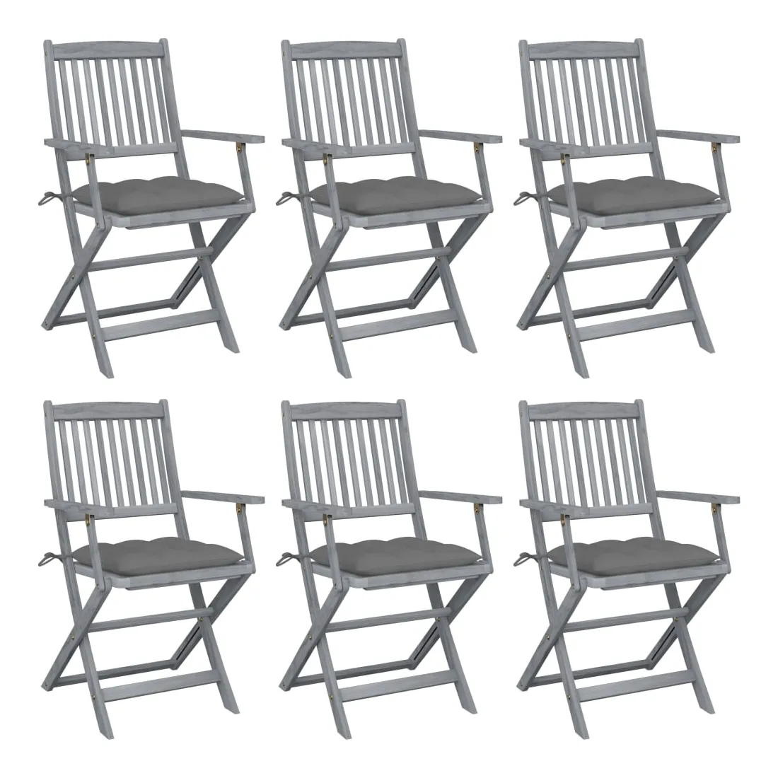 Chaises pliables d'extérieur lot de 6 et coussins Bois d'acacia