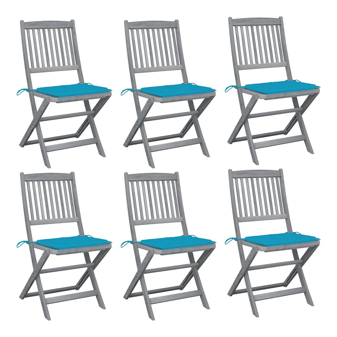 Chaises pliables d'extérieur lot de 6 et coussins Bois d'acacia